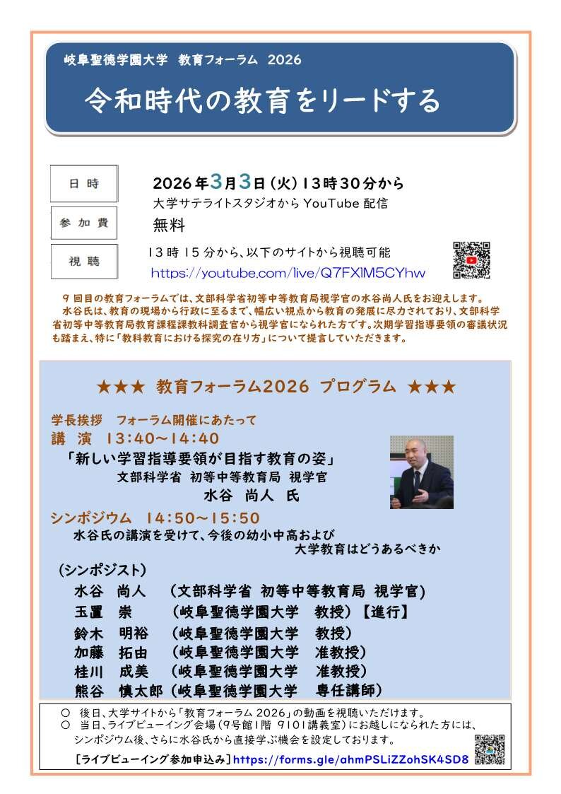 岐阜聖徳学園大学では、定期的に教育フォーラムを開催しています。
