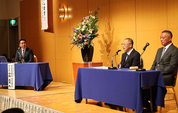 第1部では元JR東海野球部監督 大矢 正成氏、岐阜聖徳学園大学硬式野球部監督 近藤 真市による基調講演、第2部では本学3・4年生によるパネルディスカッション、第3部では教職員と強化指定クラブ指導者との名刺・情報交換会を行いました。