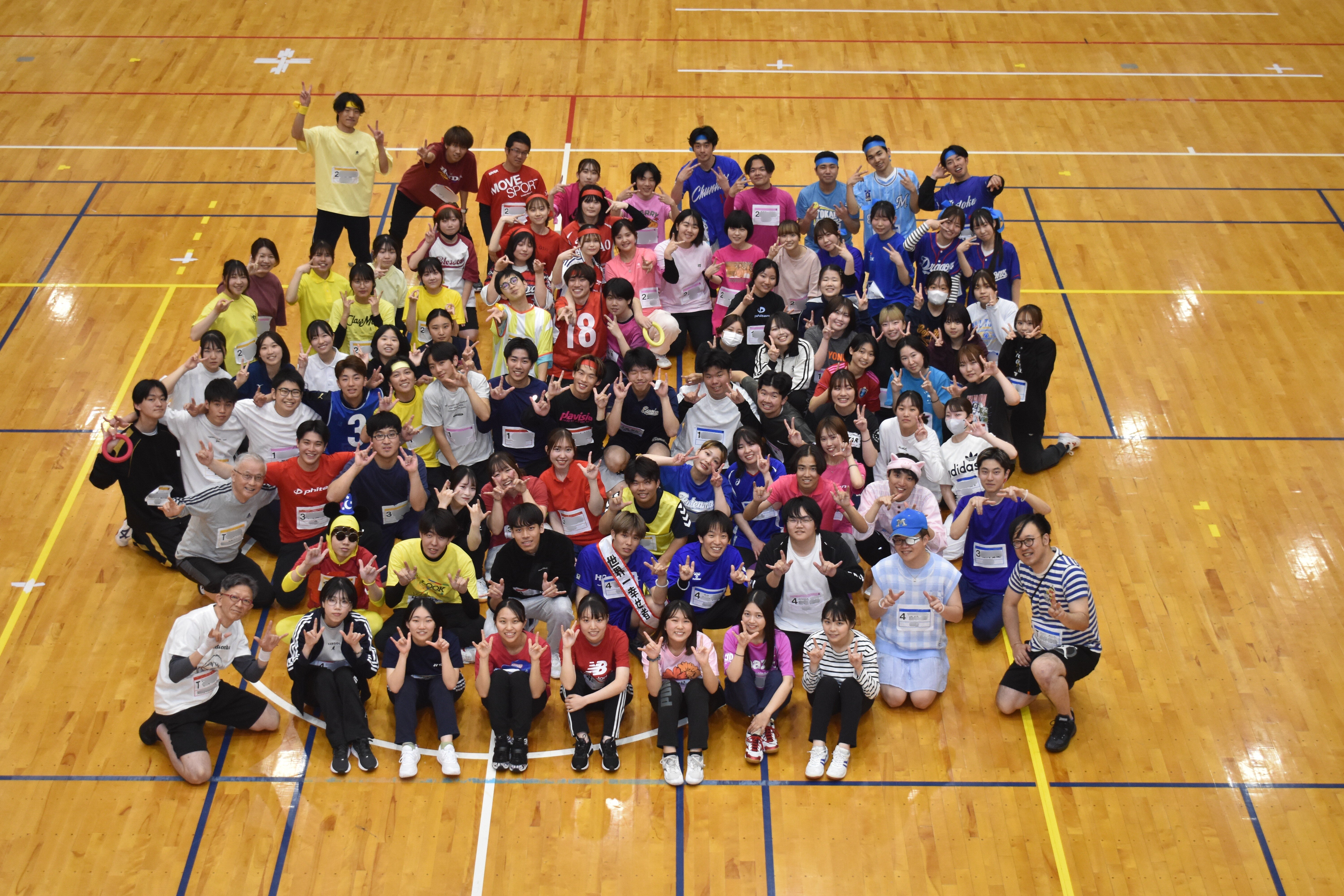 特別支援教育専修では、2024年度から、1~4年生と教員が親睦を深める新入生歓迎運動会を開催しています。2025年度は、4月25日(金)に羽島キャンパスの体育館アリーナを使って、行いました。学年縦割りの赤団、青団、黄団、桃団に分かれて、趣向を凝らした競技をみんなで楽しむことができました。