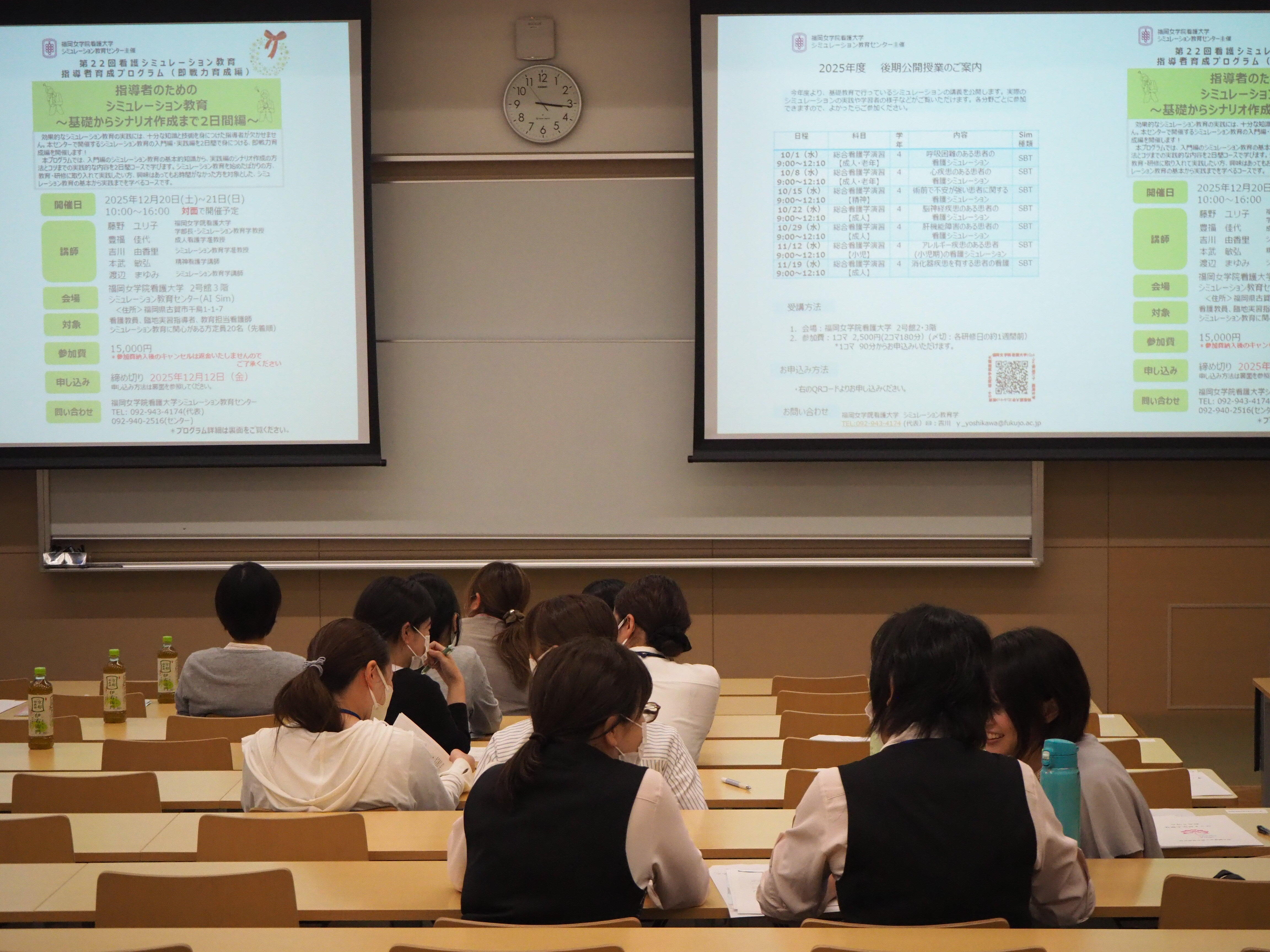ご講演では、現代の学生の特徴やシミュレーション教育の具体的な実践内容について、現場の状況を踏まえた示唆に富むお話をいただきました。