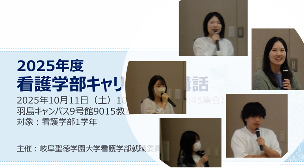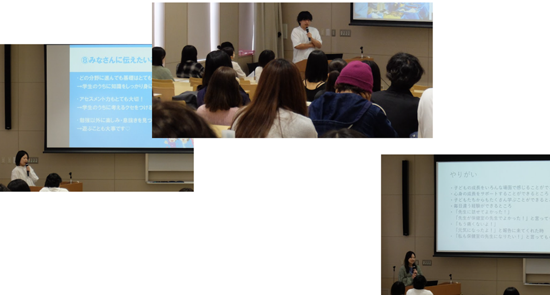 今年度は、2025年10月11日(土)に本学卒業生の看護師、保健師、養護教諭に加え、他学修了生の助産師の計5名の方々を講師としてお招きしました。