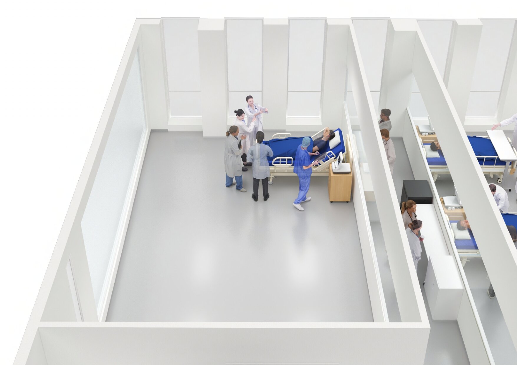 令和8年1月下旬から2月下旬にかけて、羽島キャンパス9号館2階の学習室を改修し、看護学部シミュレーションセンター「聖徳SIMLAB: LENGE(Learn・Empathize・Near by・Grow・Education)(仮称)」を設置します。