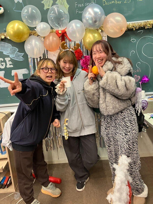 学生たちは、英語のみを使用し、プレゼント渡しゲームや大きなじゃんけんゲームなど、さまざまな活動を行いました。また、マシュマロ入りのホットチョコレート、ミカン、ケーキなどの季節のお菓子も楽しみました。