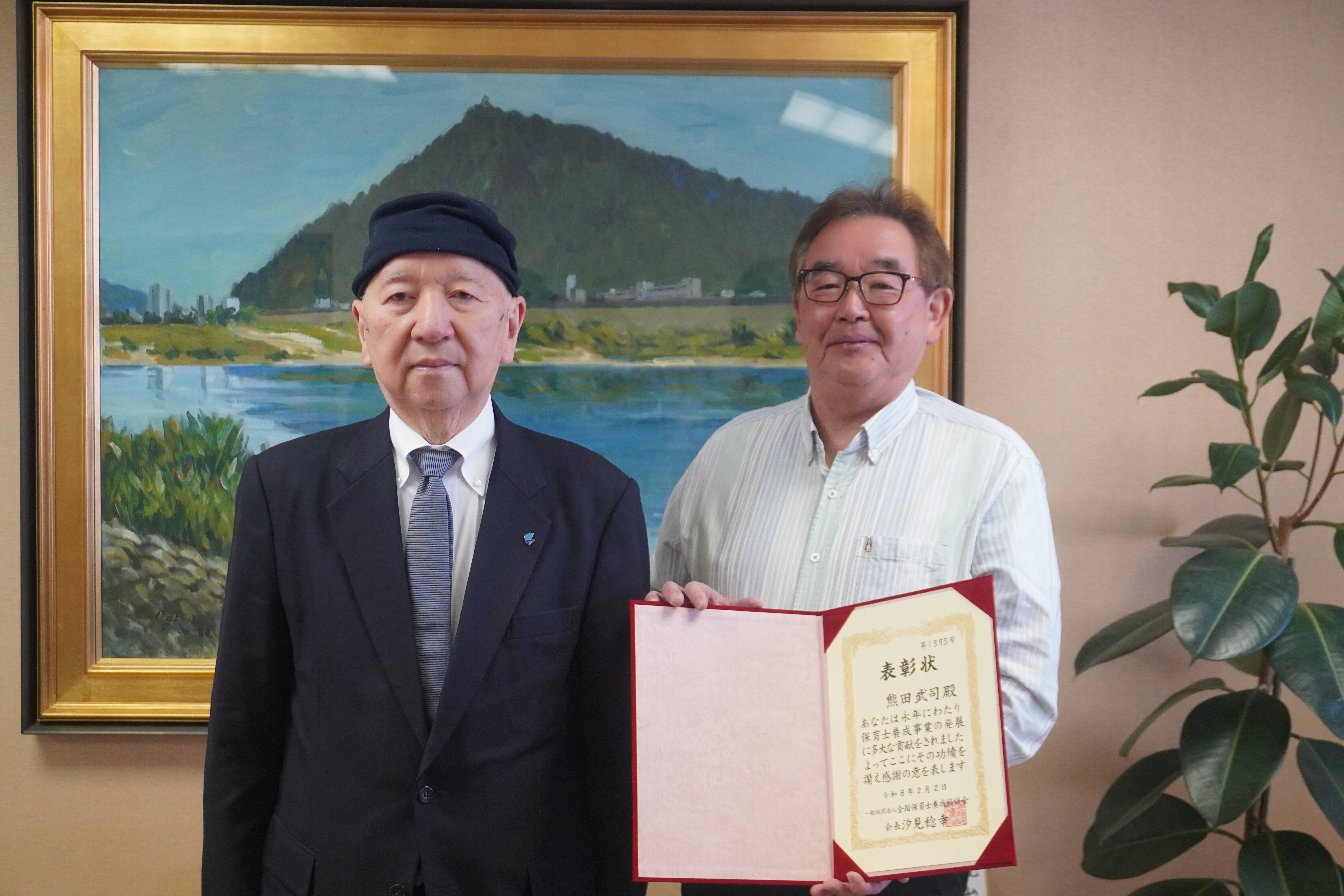 同月18日(水)、観山正見学長より表彰状が手渡されました。この表彰は、永年にわたり保育士養成施設において教育等に尽力され、多大な貢献をされた教職員に贈られるものです。