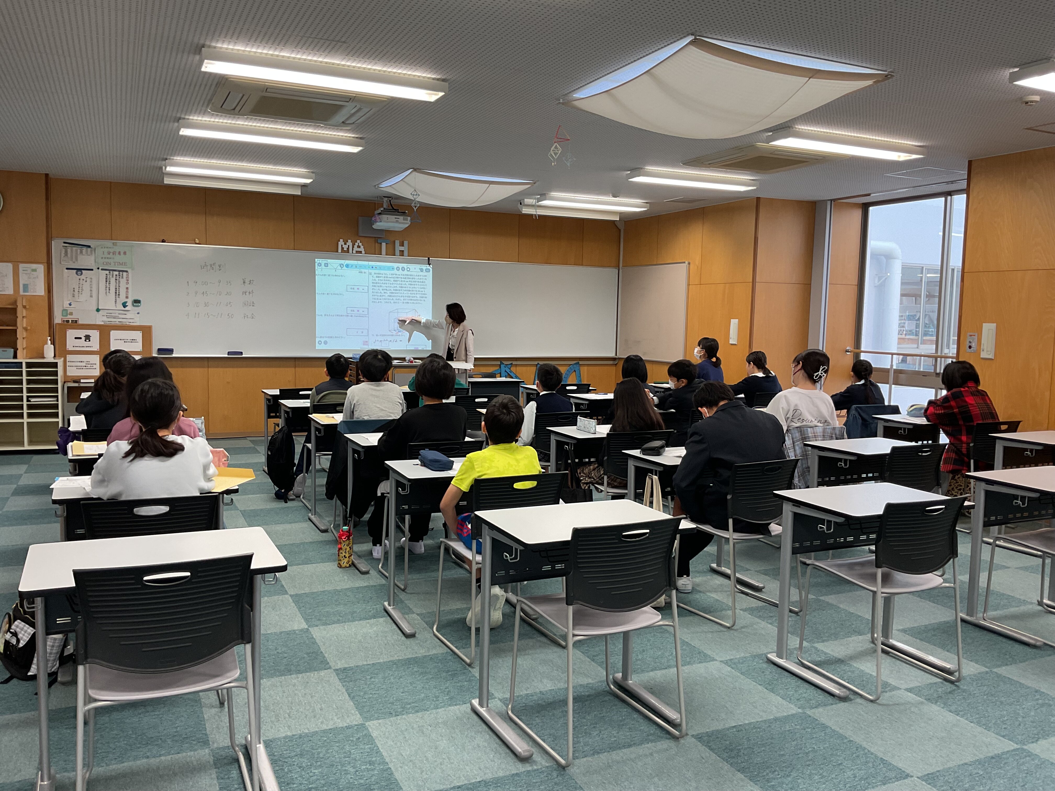 講堂では保護者の皆様へ、各教室では児童の皆様へ模試の概況や各教科の解説をしました。