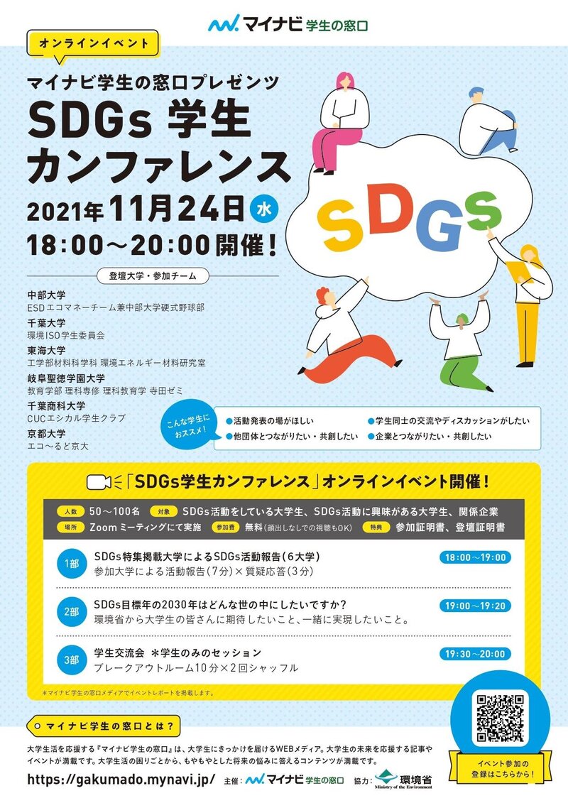 マイナビ学生の窓口が主催するオンラインイベント「SDGs学生カンファレンス」が、来る2021年11月24日(水)18時~20時に実施されます。