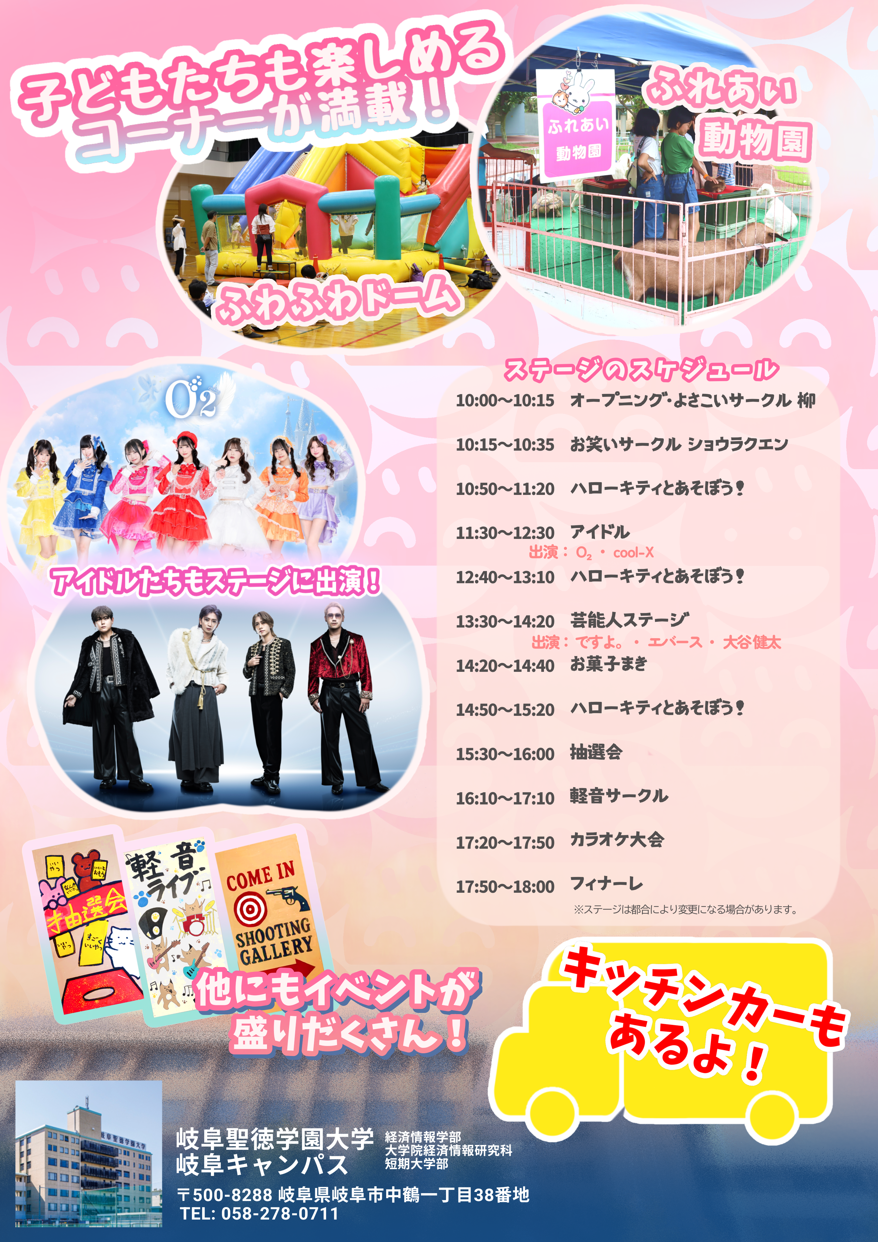 抽選会やカラオケ大会、射的、キッチンカー、各サークルの様々な企画など、幅広いイベントが盛りだくさんです。